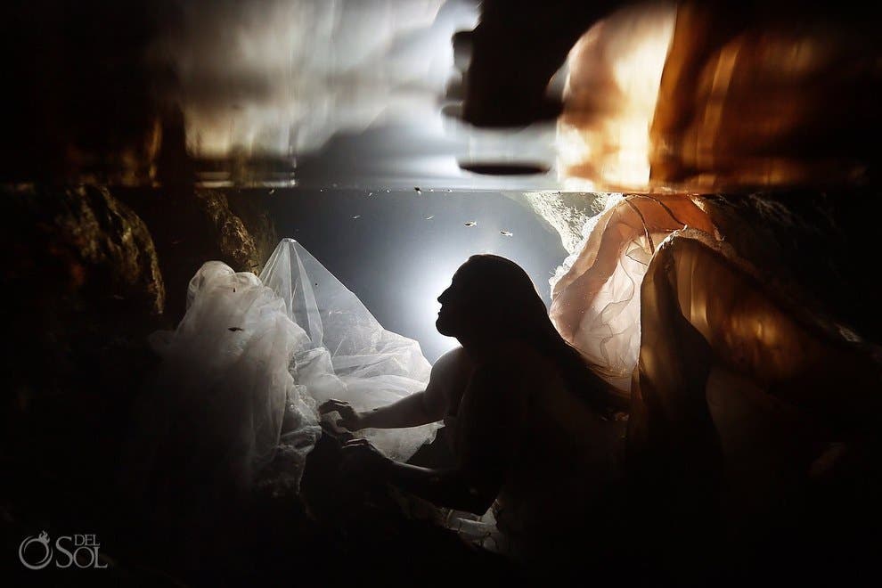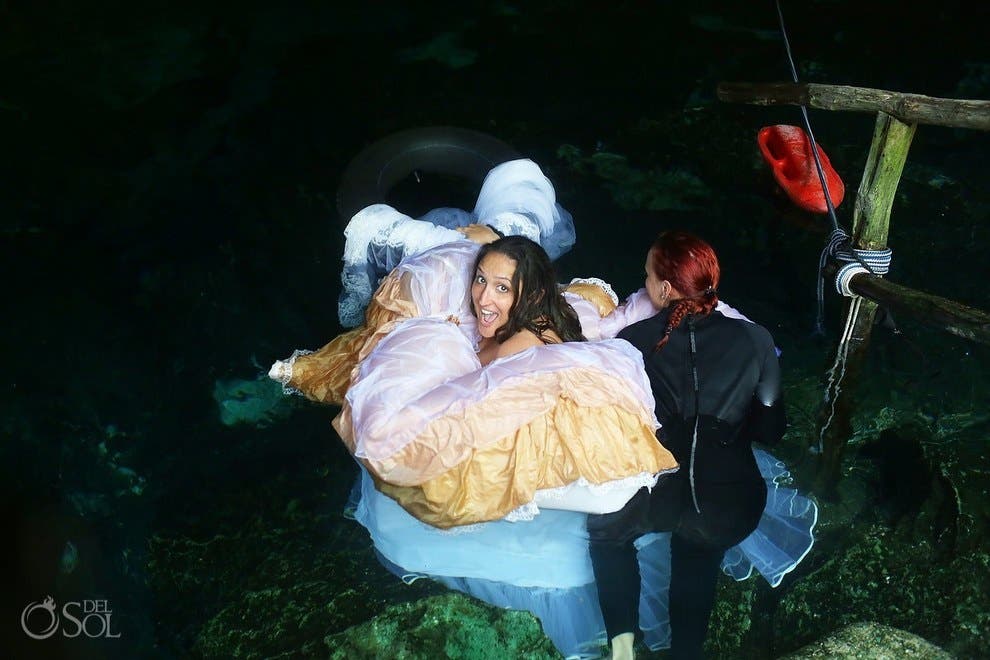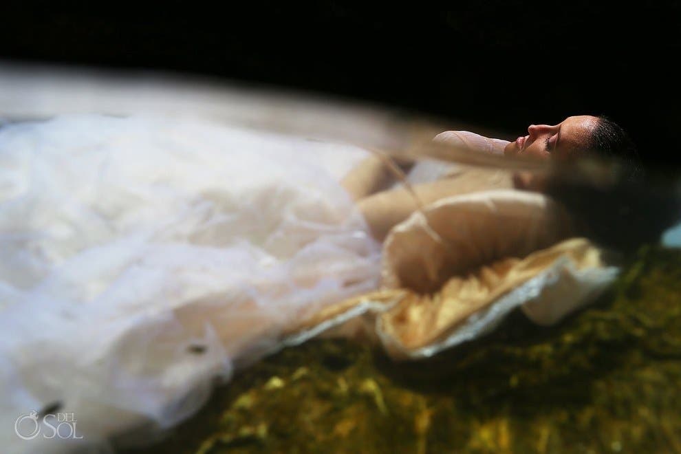 Como una manera de lidiar con su dolor, ella quería ser fotografiada saltando en su vestido de novia a la Riviera Maya, en México.